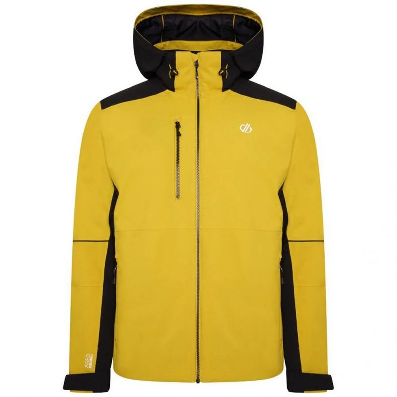 The Men's Remit Ski Jacket. Made of recycled, highly waterproof ARED 20/30 fabric- our most breathable fabric yet. Quilted with high warmth, low bulk insulation. Featuring a detachable snowskirt with gel grip and taped seams to keep the weather out. Soft fleece lining to pack in the heat on the mountain. Full protection on your downhill runs. This product recycled 18 plastic bottles.