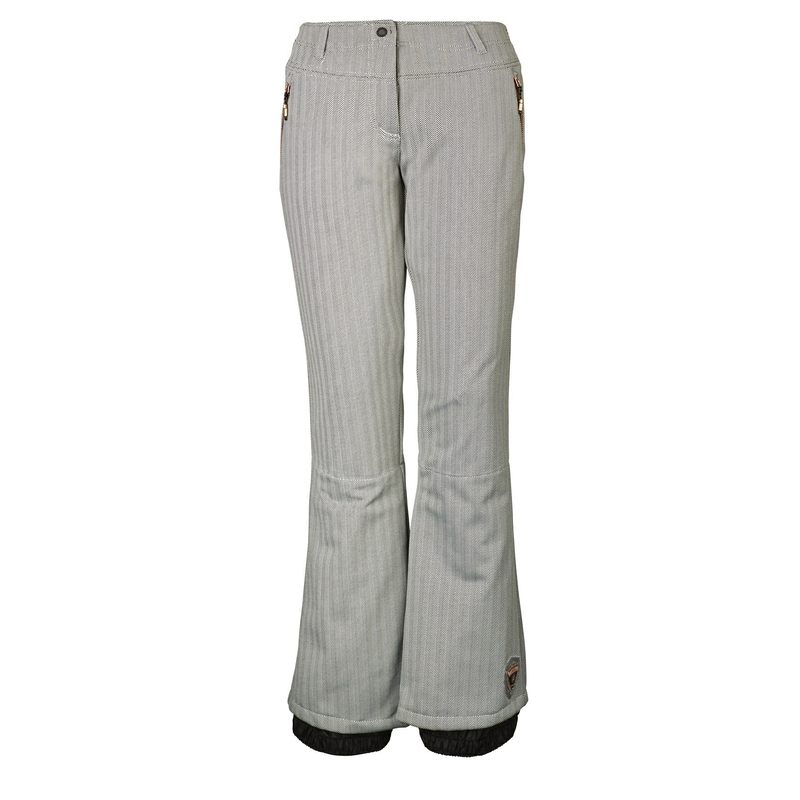 The Killtec Jilia Allover are a softshell stretch slimfit pant, stylish, comfortable and functional for onslope action with pile fleece lining, zip pockets and zip snowcatcher. The attractive herringbone pattern sets them apart. These pants are waterproof and breathable so perfect for variable weather conditions on the mountains.